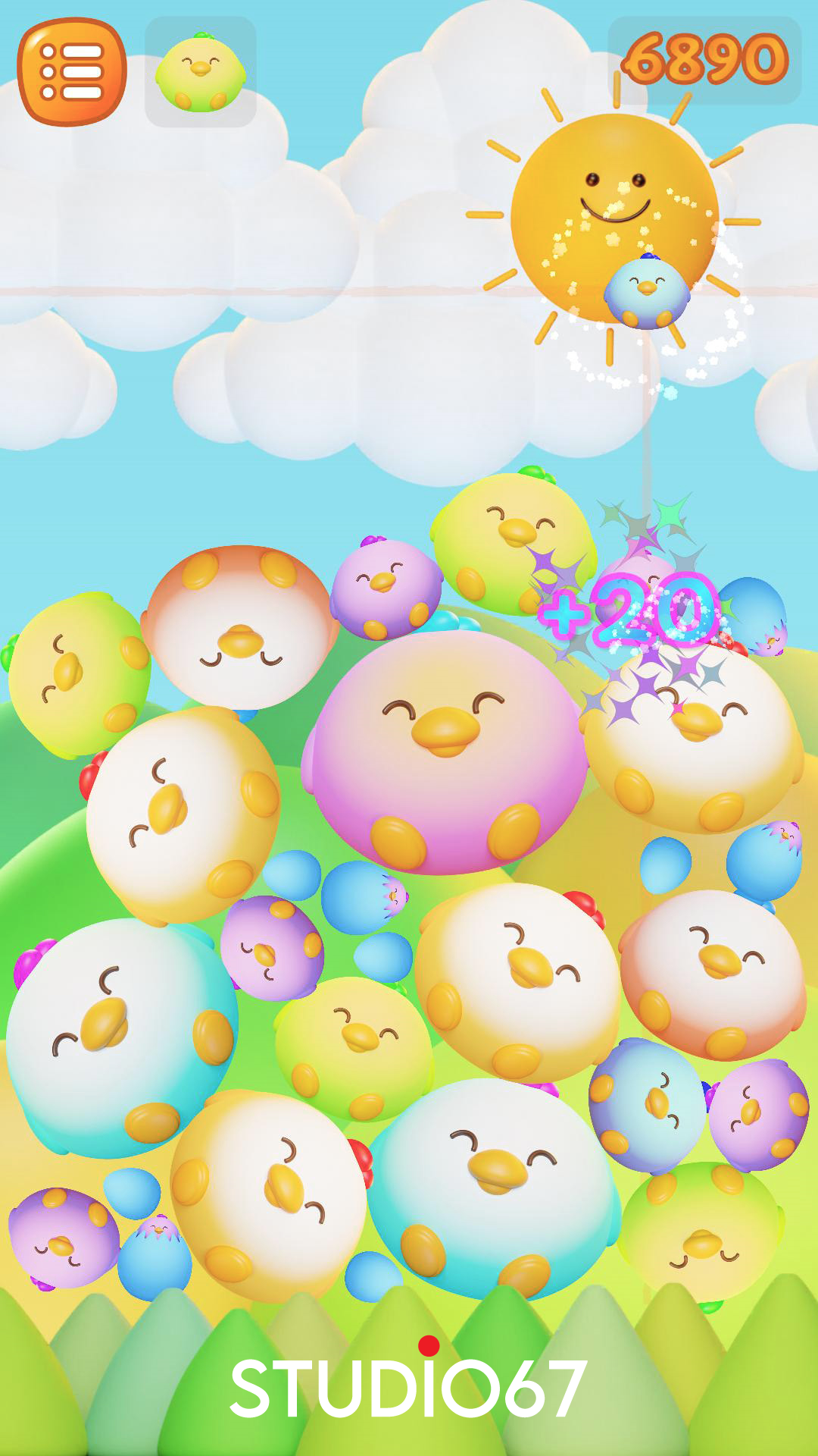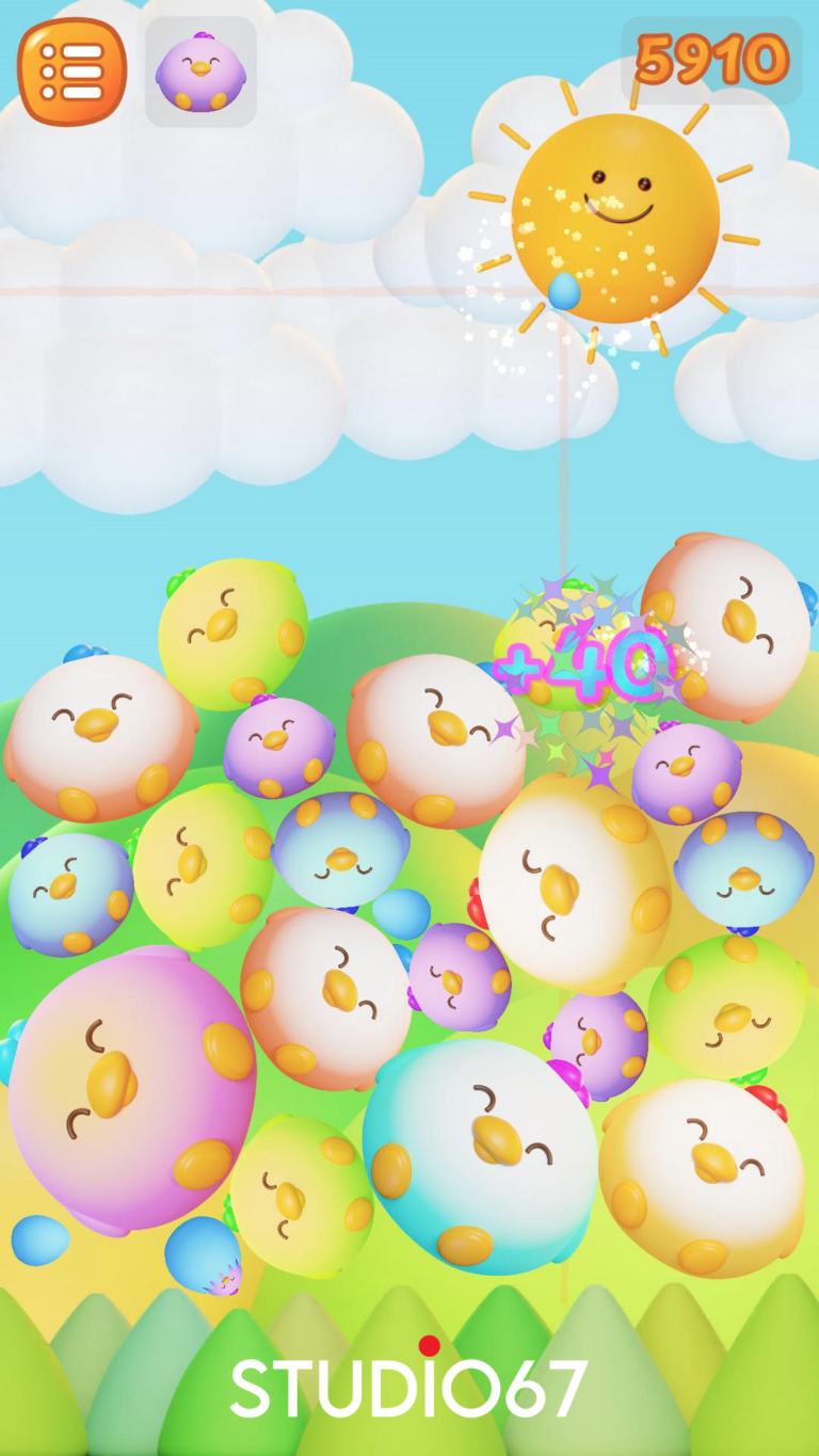 Chicky Pop is a minimal drop merge puzzle game where identical chicks merge to form a new, larger chick, and the goal is to get to the special chick wearing bunny ears.